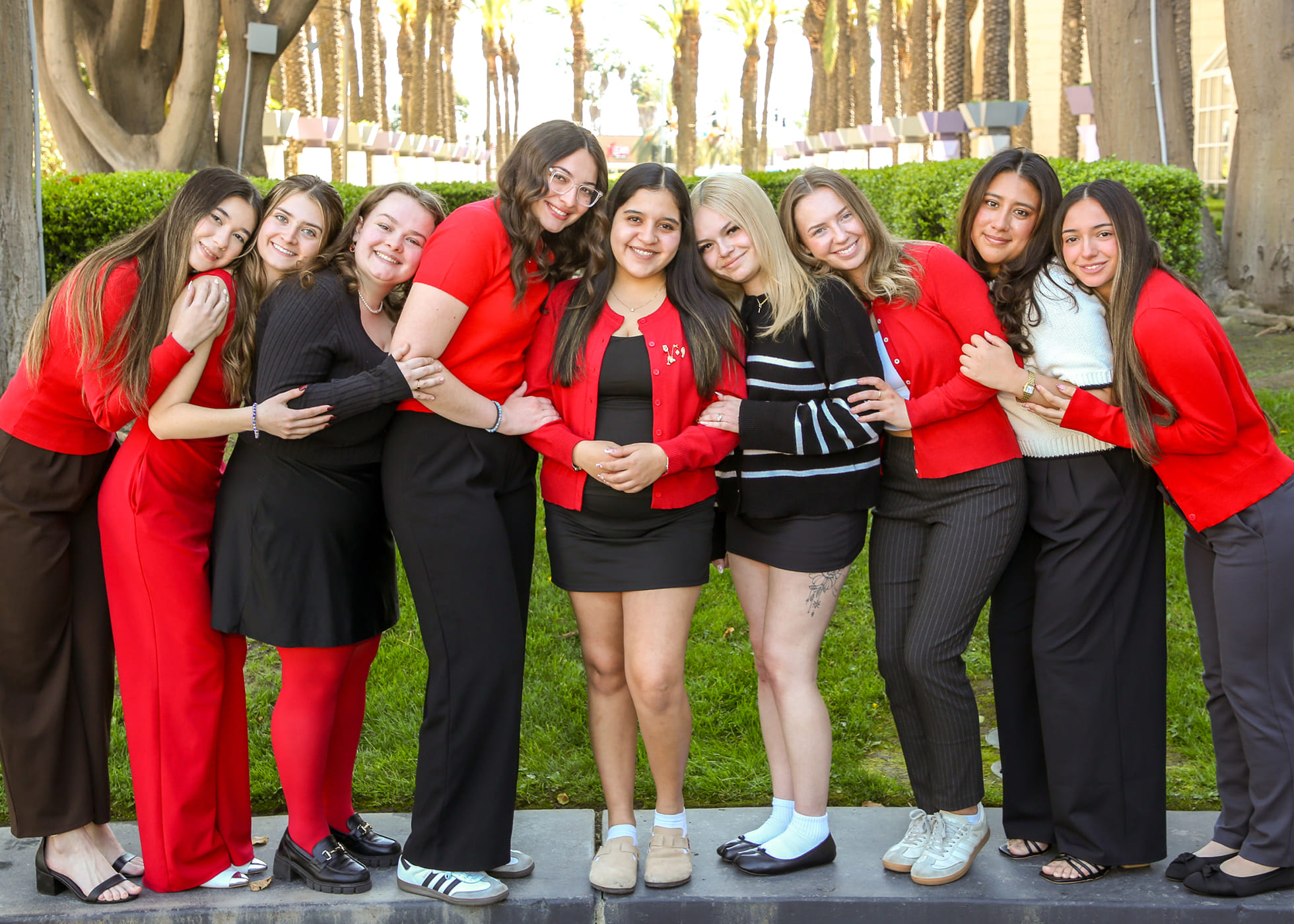 Coordinate with your exec board to choose outfits that look great together. Some groups opt for all black, while others choose a couple of coordinating colors. We recommend sticking to timeless solids and avoiding busy patterns.